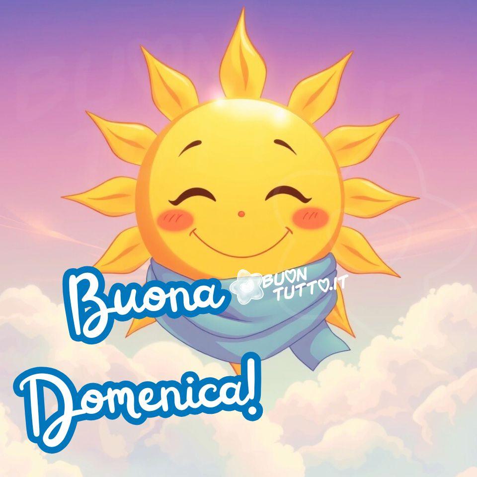 Un dolcissimo sole avvolto in una calda sciarpa azzurra, tra nuvole soffici, crea un’atmosfera solare e positiva. È l’immagine perfetta per augurare con affetto una buona domenica a familiari, amici e su tutti i tuoi social preferiti.