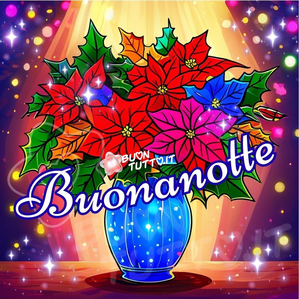 Buonanotte con una ghirlanda fatta con i fiori della pianta chiamata “Stella di Natale” e stelline. Un abbraccio a tutti!