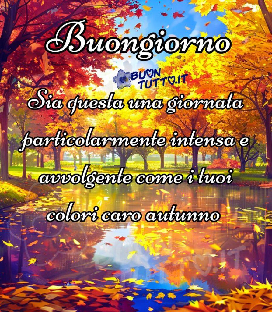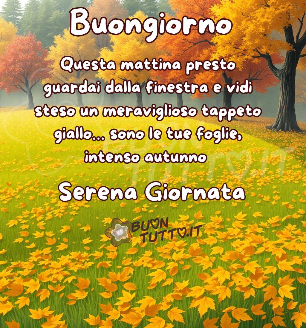 Buongiorno con una suggestiva immagine autunnale e frase poetica.