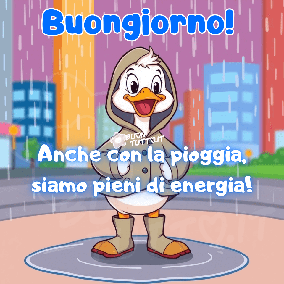 Buongiorno con una simpatica anatra. Anche con la pioggia, siamo pieni di energia!