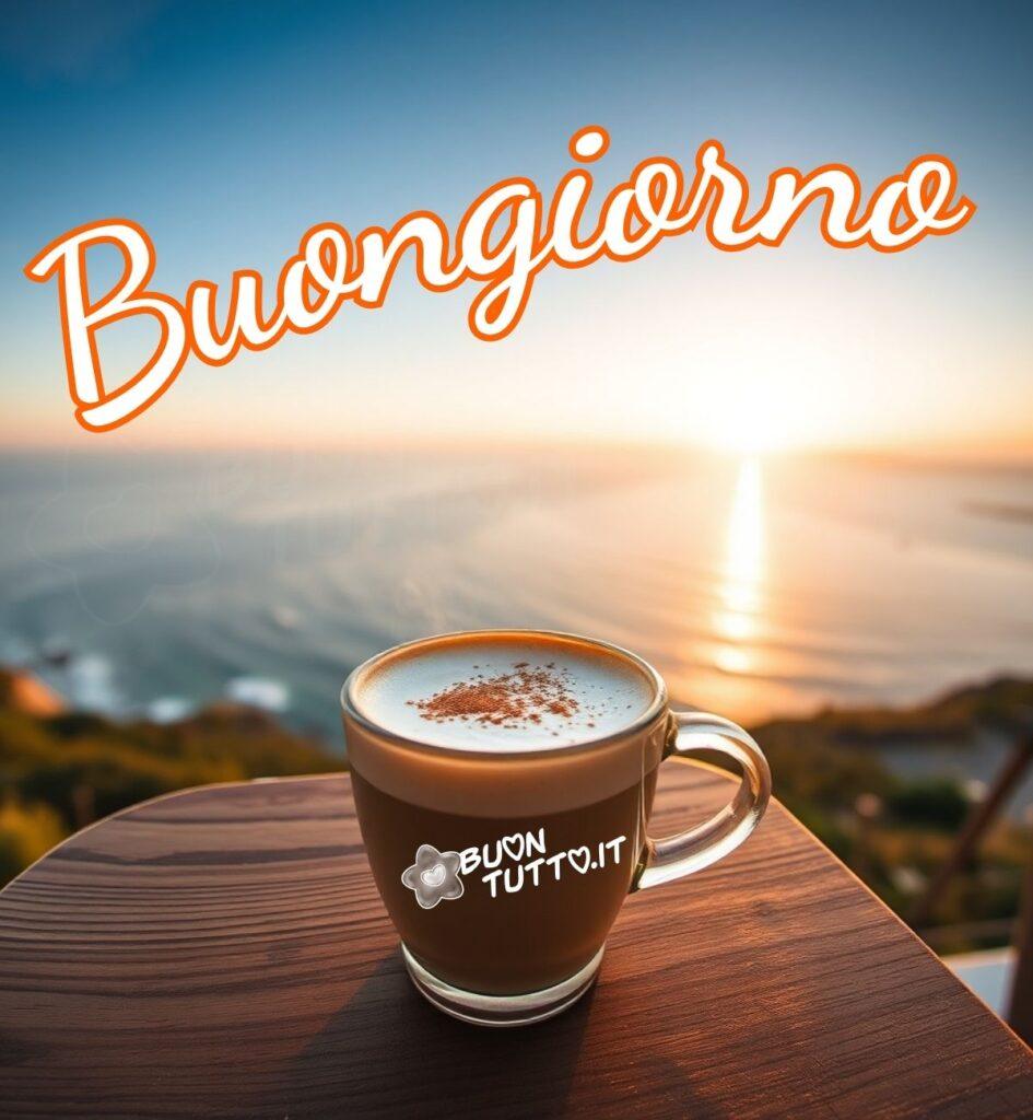 Buongiorno con un caffellatte e un suggestivo mare.